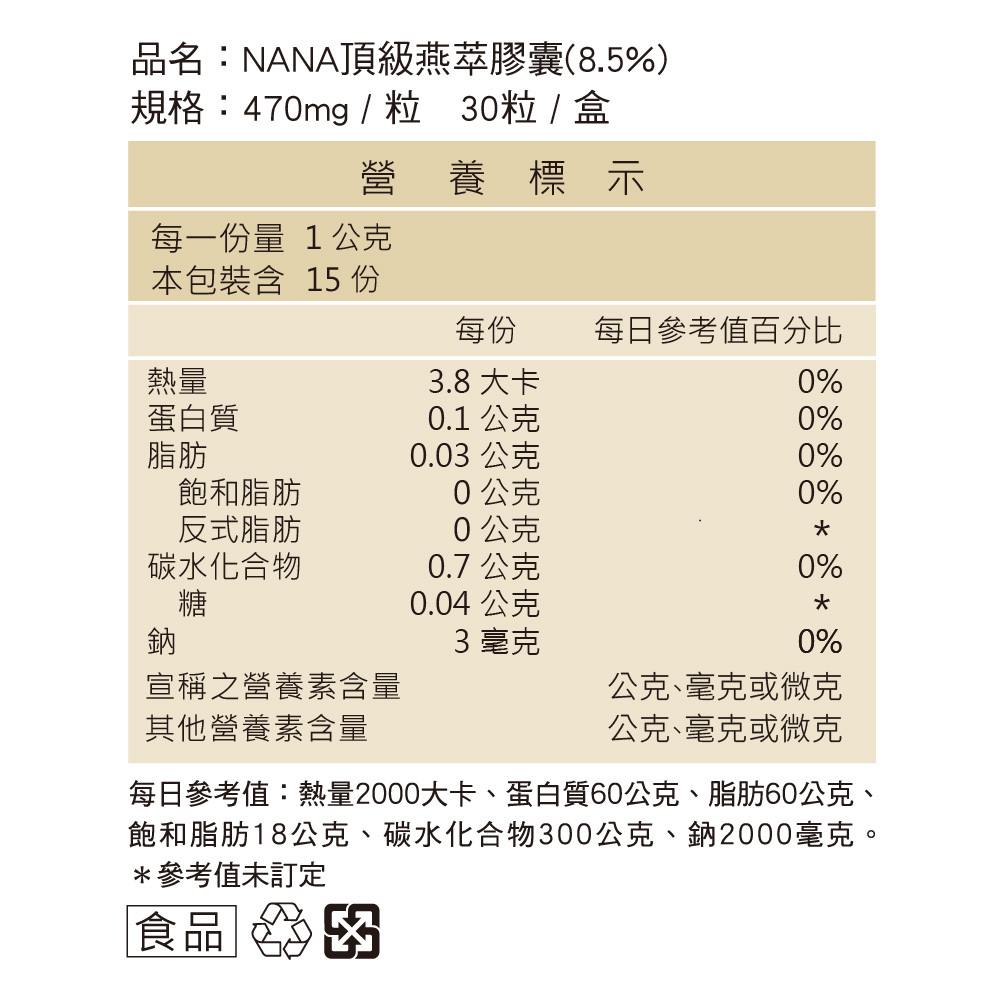 ($167/顆)10盒送3盒 NANA燕萃膠囊8.5%-30顆/盒